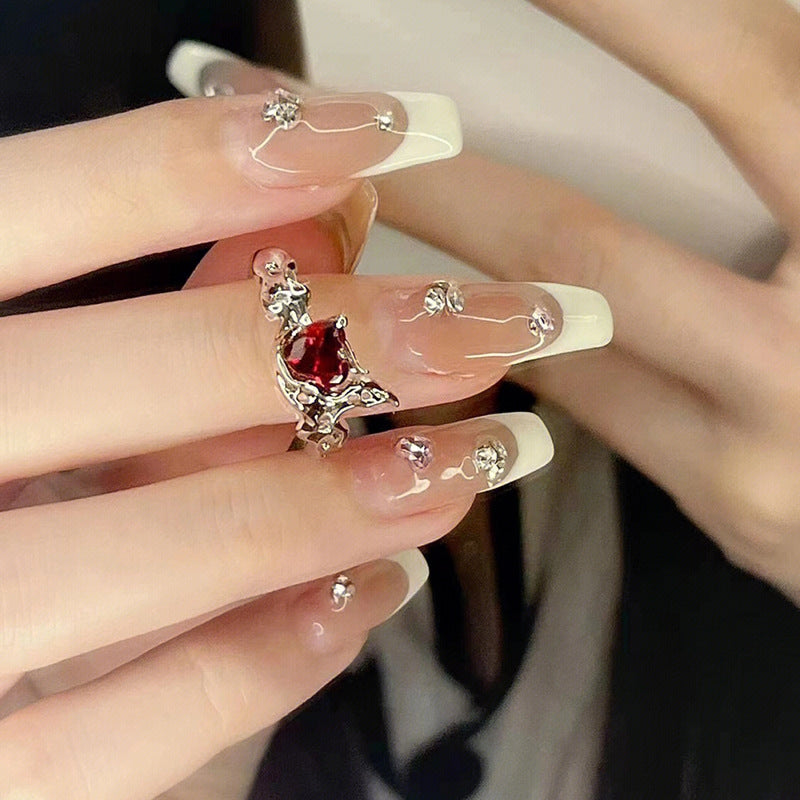 S925 sterling silver niche design red open diamond set zircon french irregular gem ring