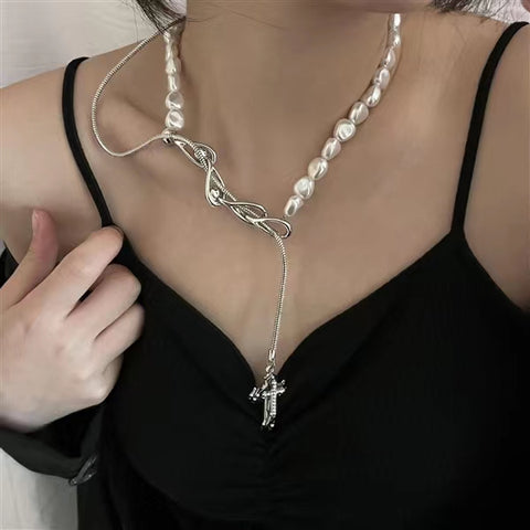 Sassy and sweet, personalized, versatile, stitched pearl necklace, high-level design sense, minority fringe