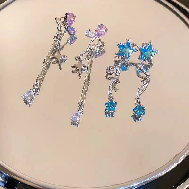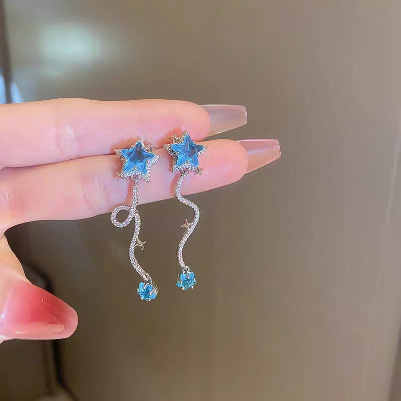 Silver Needle, Star, Water Drop, Zircon Earrings, Small Design Sense Earrings, Net Red, New Sweet and Advanced Sense Earrings