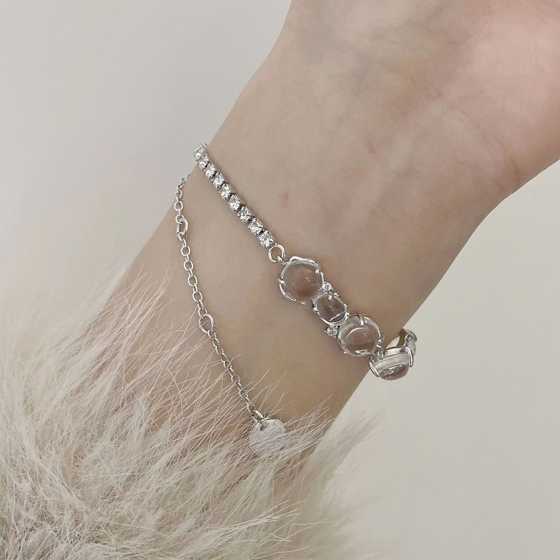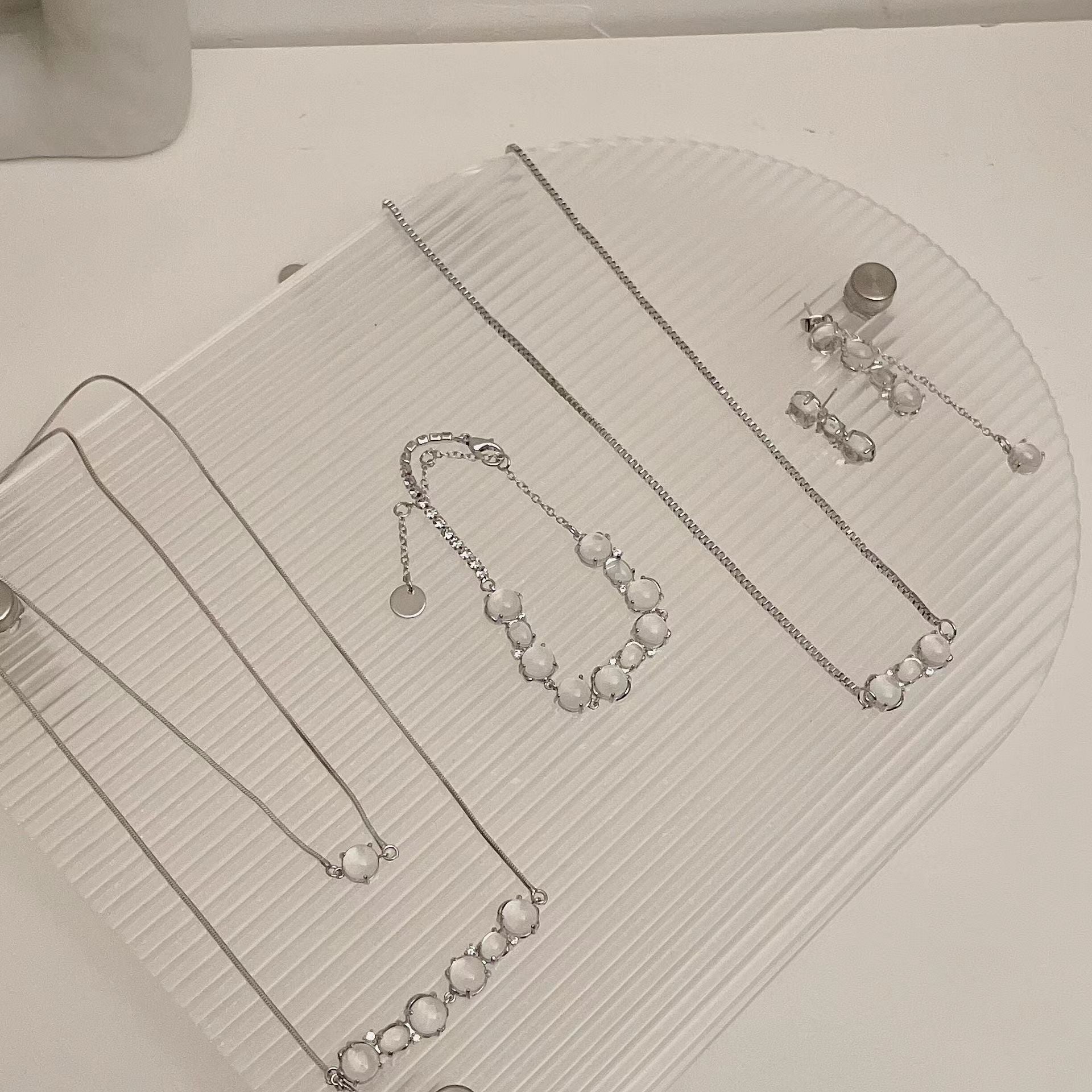 Simple and personalized design, transparent bead necklace, fashionable and fashionable double layer clavicle chain, bracelet, earring set