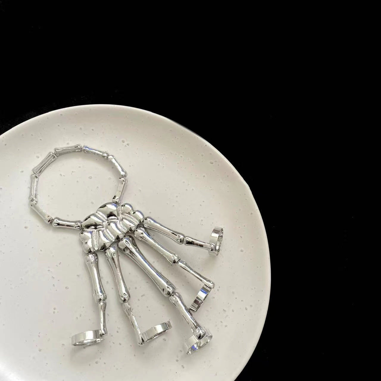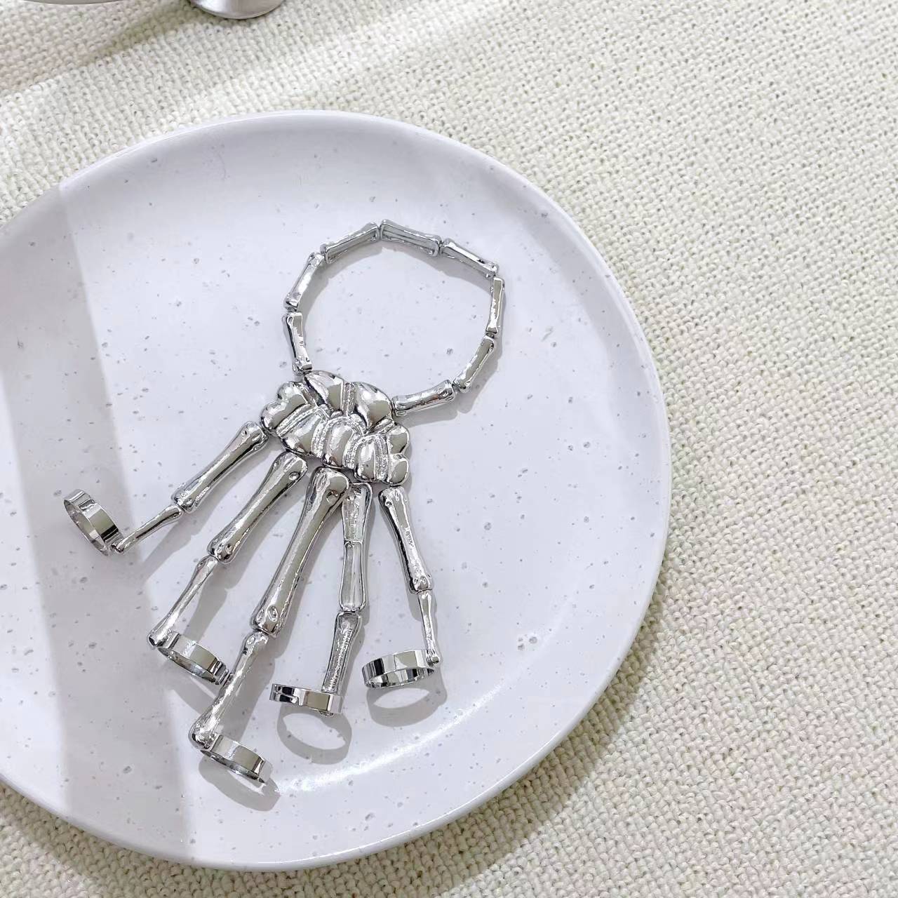 Skull Punk Style Silver Skeleton Bracelet Gloves INS Flexible and Adjustable Unisex Fit