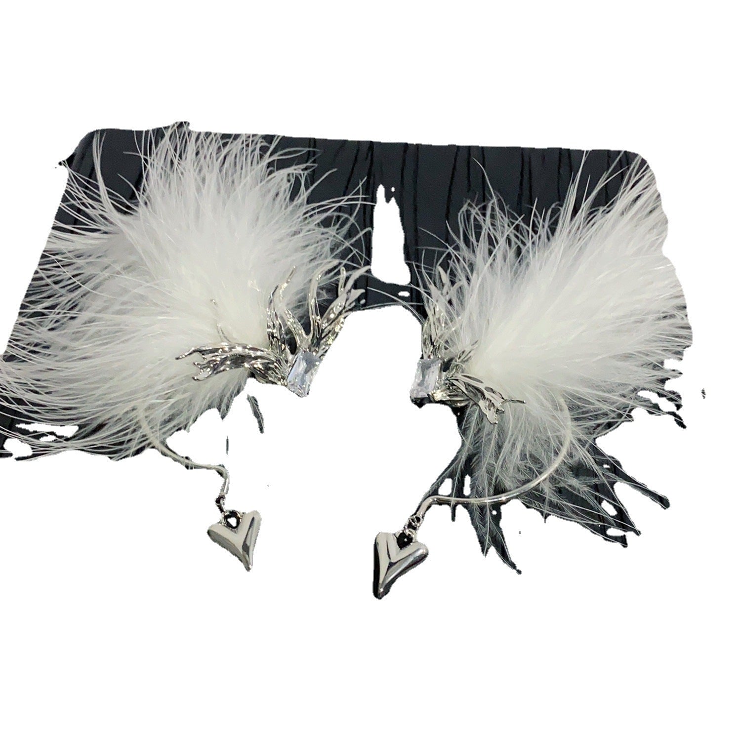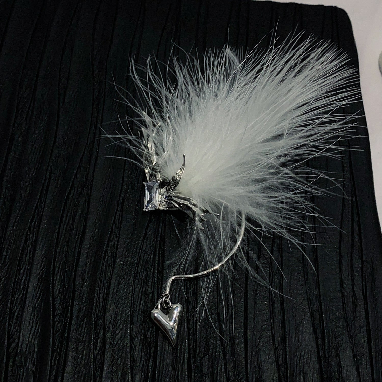 Small design sense, left and right ears, single feather, antler, zirconium inlaid earrings, fashionable love pendant, ear hook without ear hole