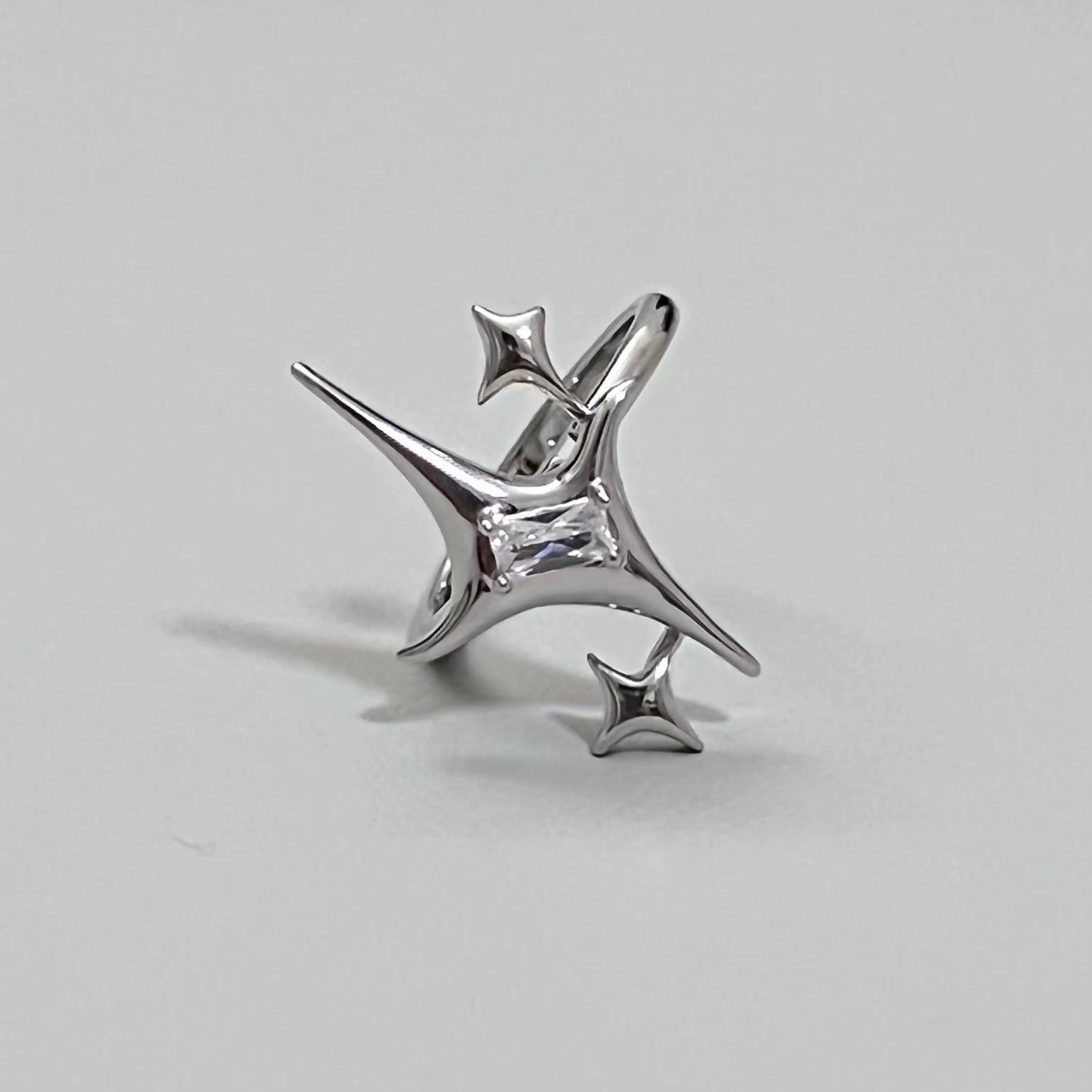 Small Star Couple Ring Korean Edition INS Design Sense Letter X Inlaid Zircon Texture Ring for Men's Fashion Personality Hand