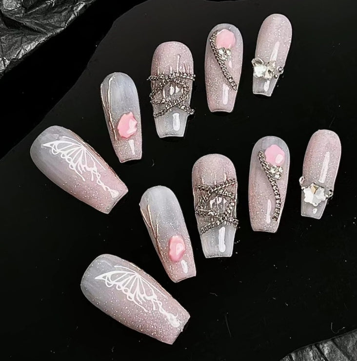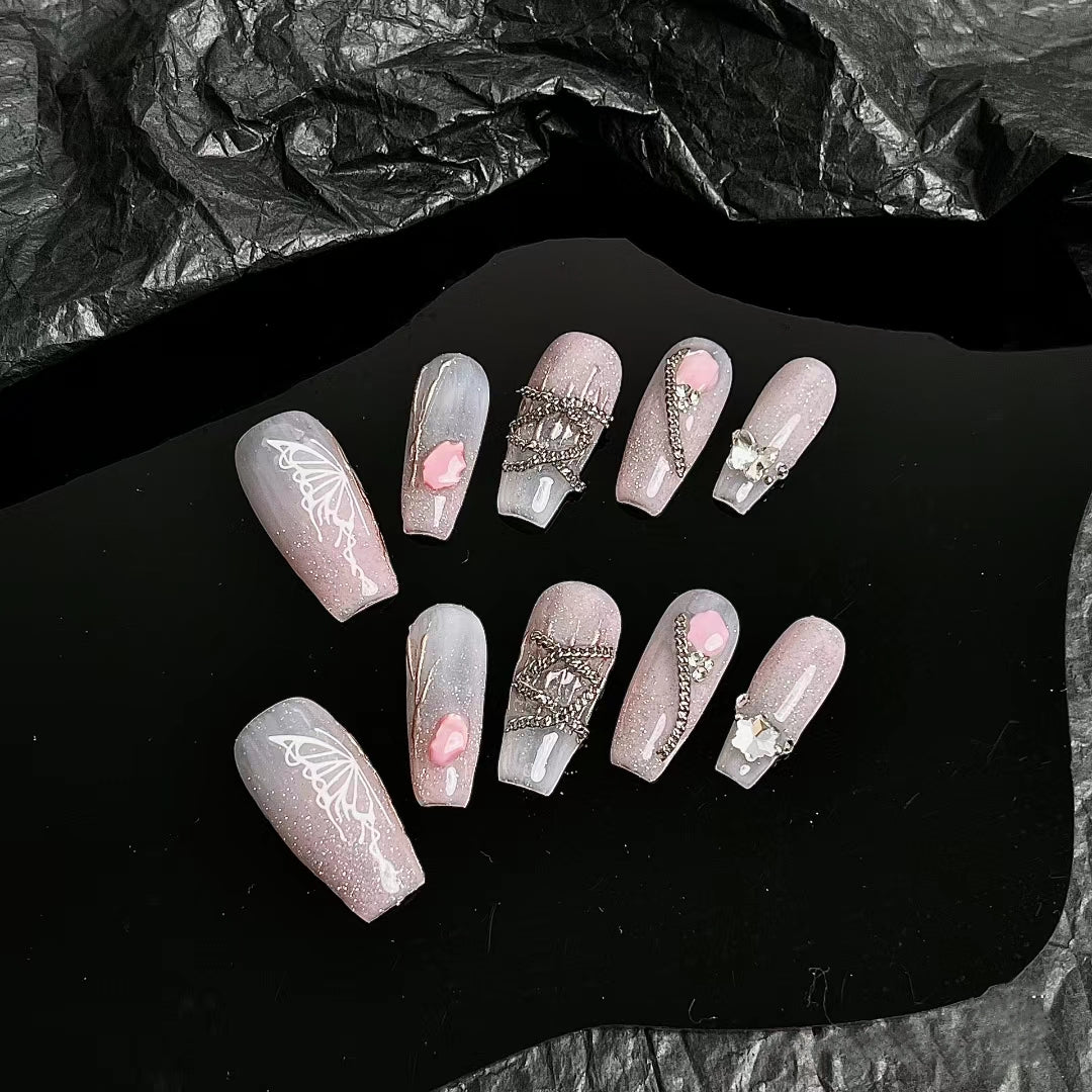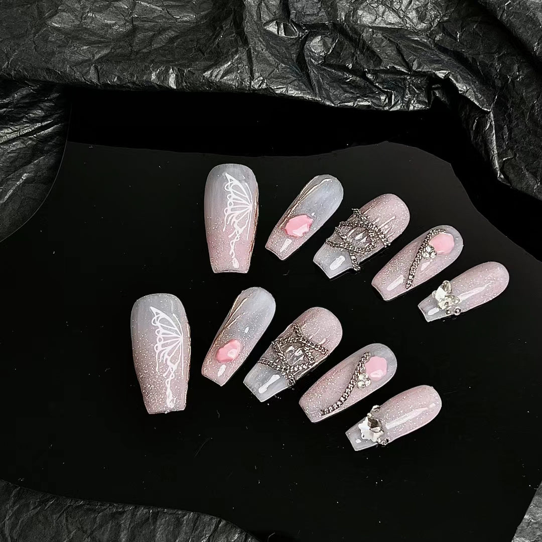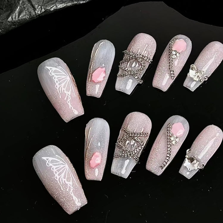 Star Butterfly | Lost Immortal Series Star Shining Pink Handmade Nail Enhancement Butterfly Wing Chain High Quality Wearing Armor