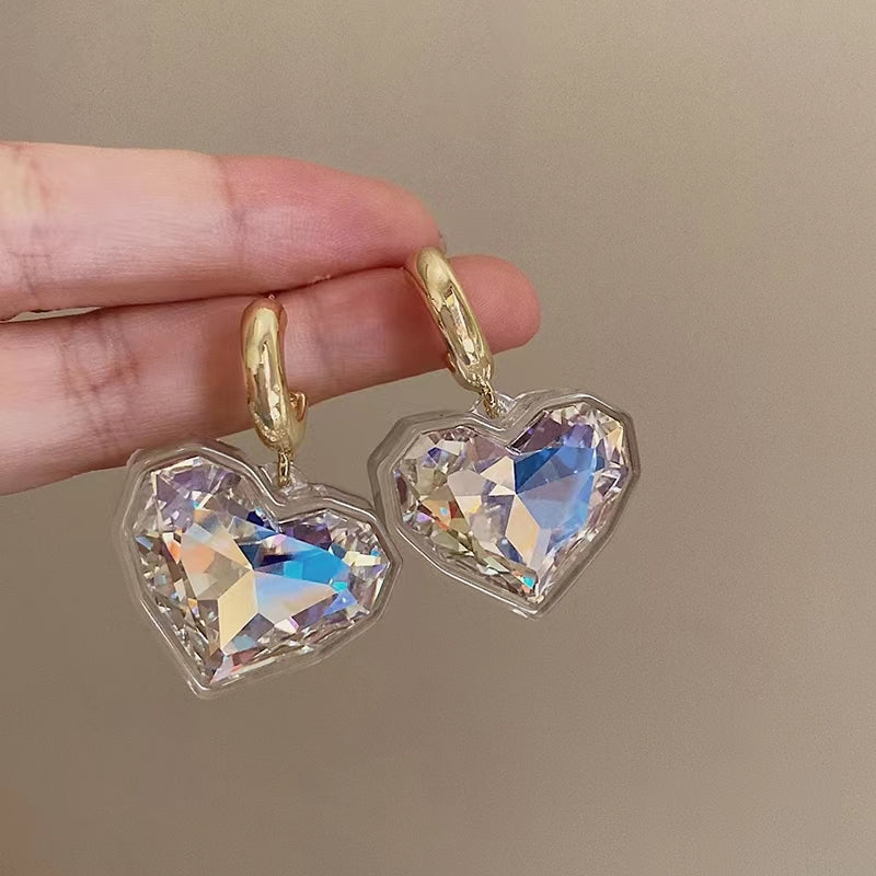 Stereo transparent love design senior sense of silver needle exaggerated earrings