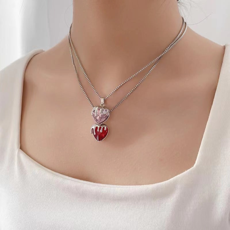 Strawberry love delicate necklace female tide cool spice senior design sense of light luxury niche clavicular chain