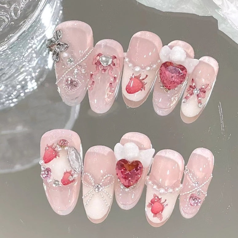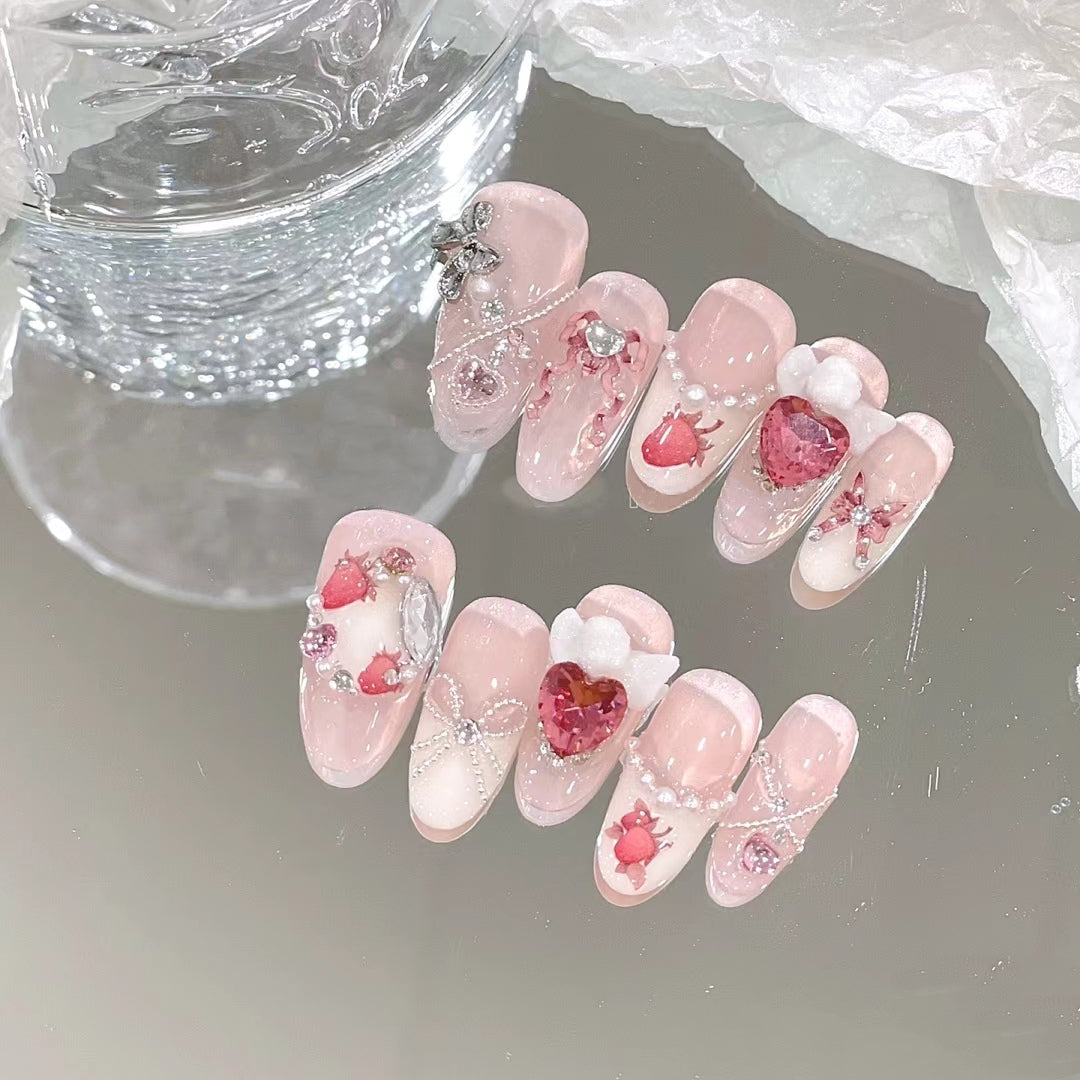 Strawberry pink rabbit ribbon ribbon bow ultra-thin girl Japanese wear nail enhancement