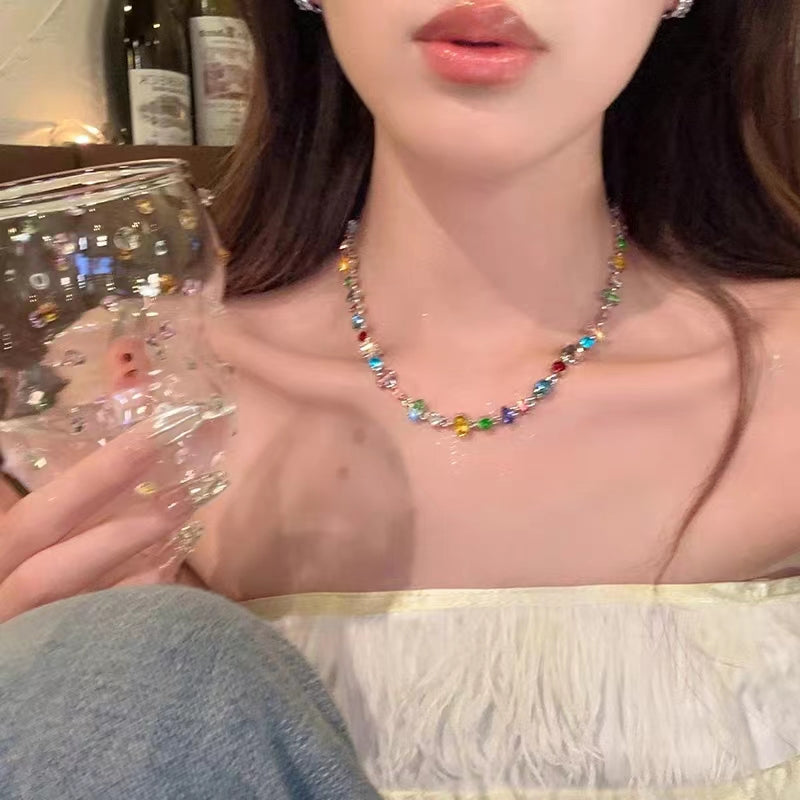 Sunset Party~Candy Colorful Crystal Necklace Light Luxury Crowd 2023 New Popular Collar Chain Neckchain Female