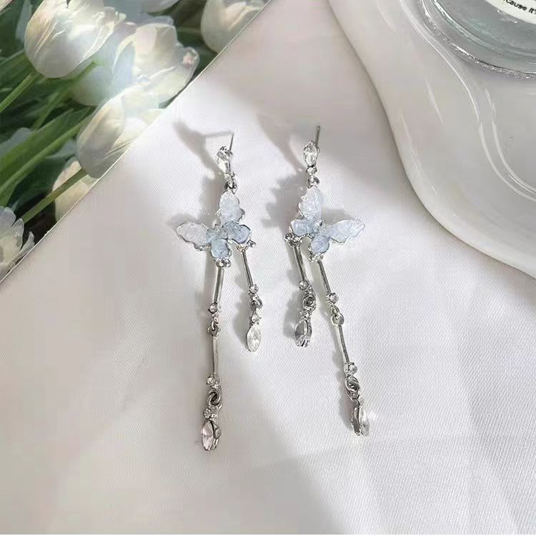 Super Immortal Gradual Butterfly Rhinestone Tassel Earrings with Unique Design and Personality, Popular in 2023