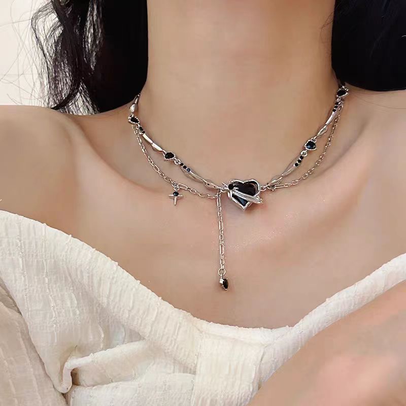 Sweet and Cool Exclusive~Lava Black Love Necklace for Women's Summer Internet Celebrity Spicy Girl Accessories with a Design Sense of Distinctive Collar Chain