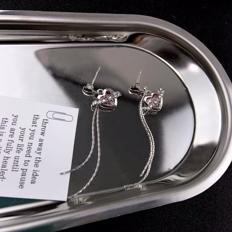 Sweet temperament pink love long tassel stud earrings women's light luxury ins high-end fashion personality versatile earrings