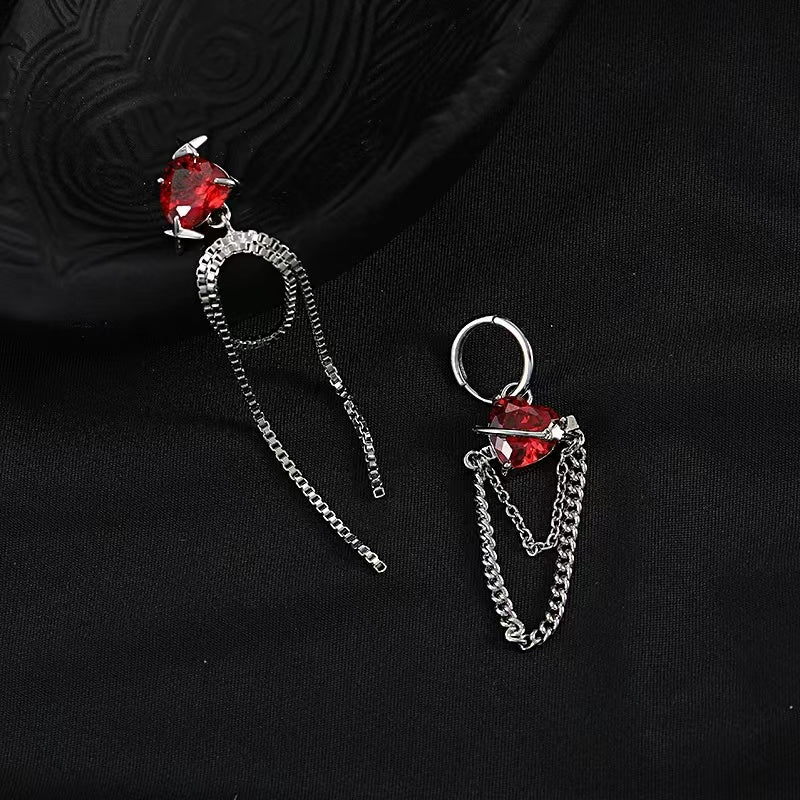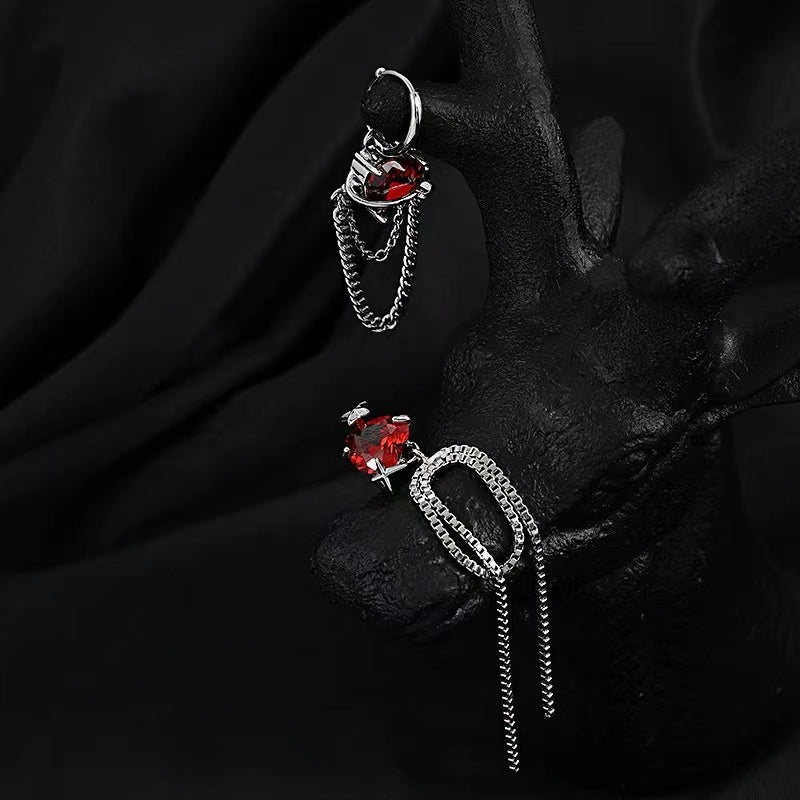 Tassel earrings female asymmetric senior sense of red love zirconia earrings ins cold wind personality sweet cool earrings