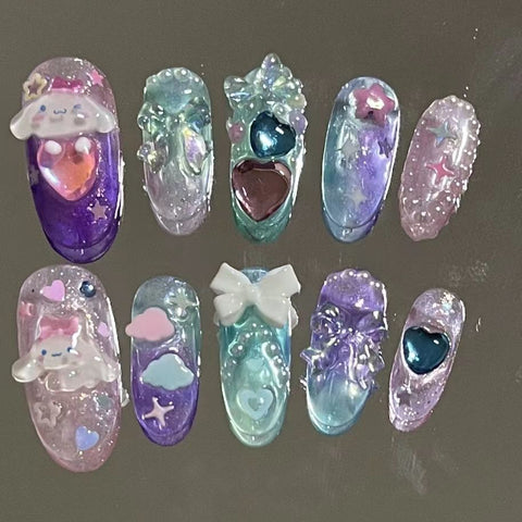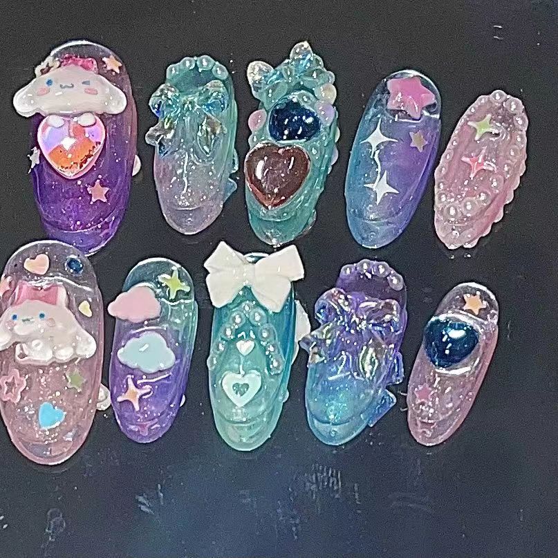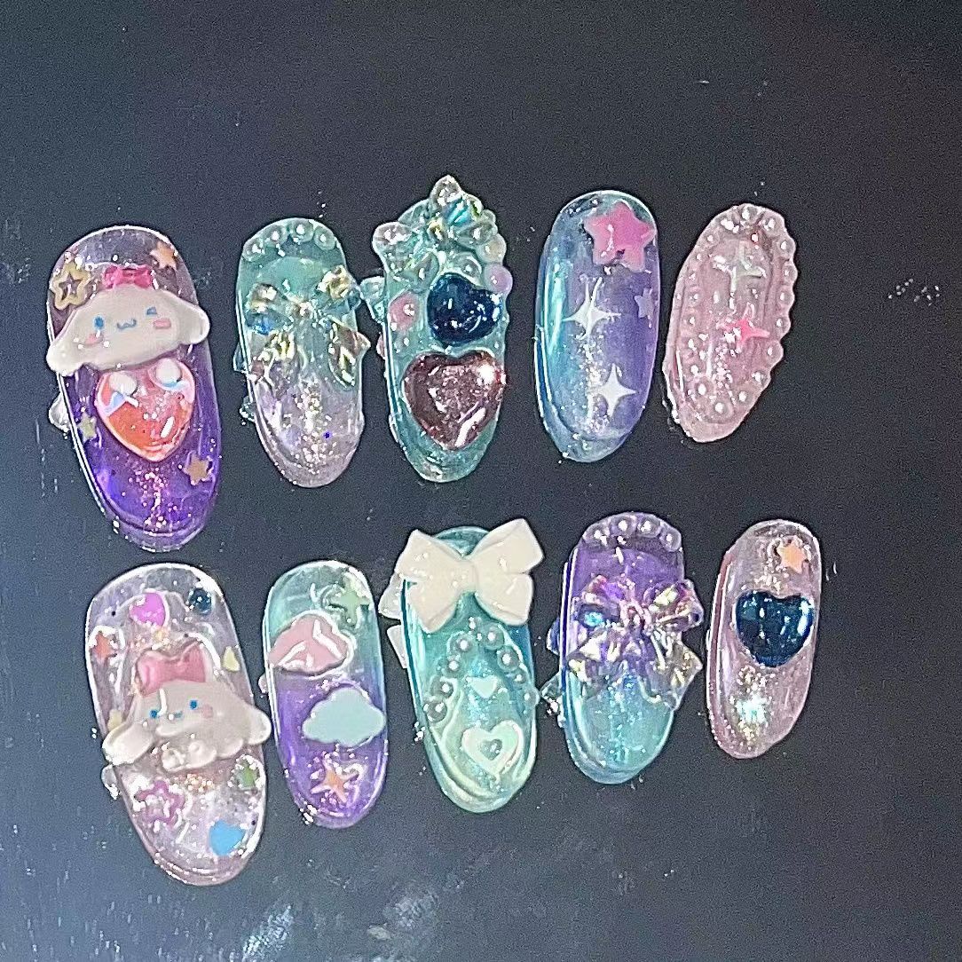 The actual shot Yugui dog wearing nail y2k spicy girl nail new cartoon explosive flash drill ins wind