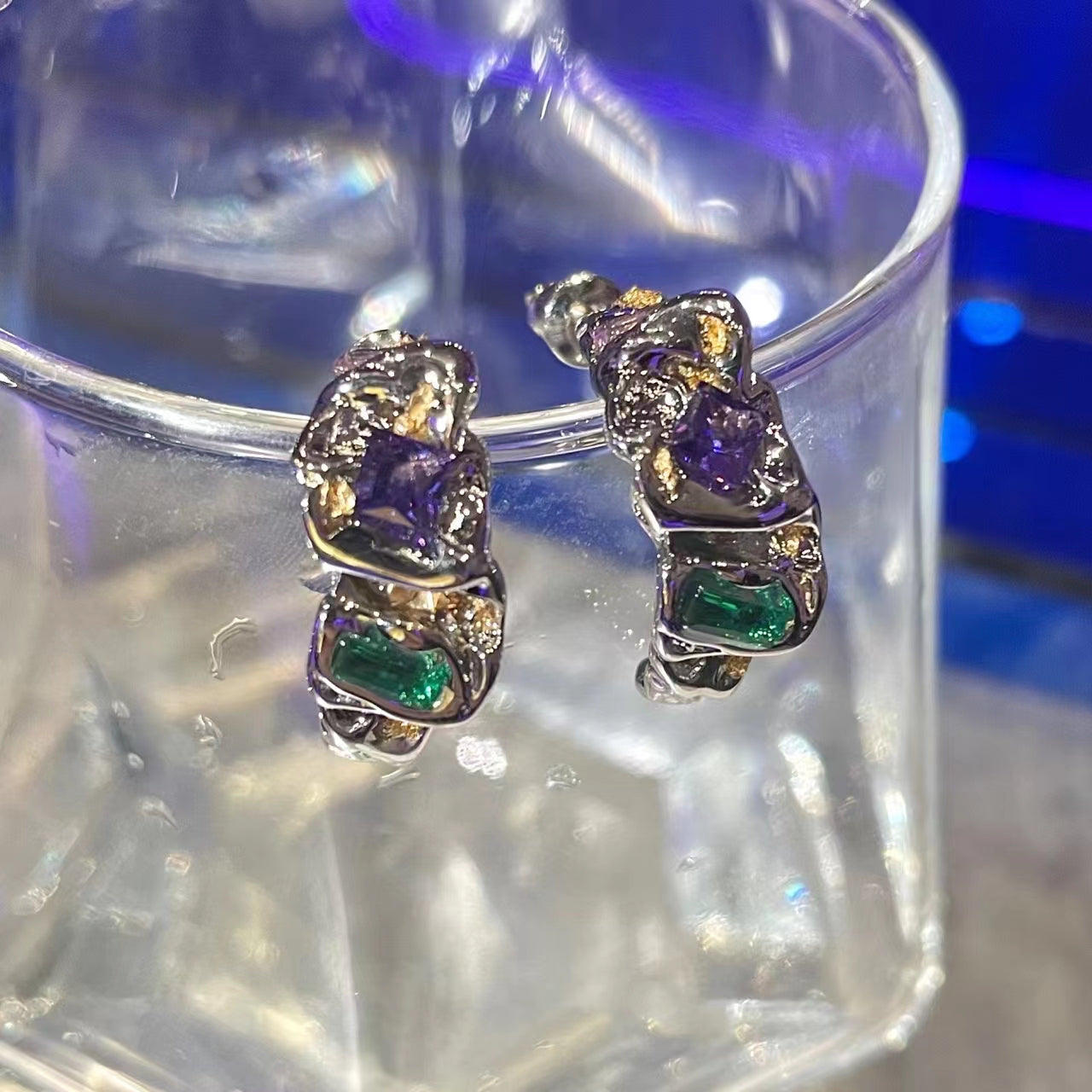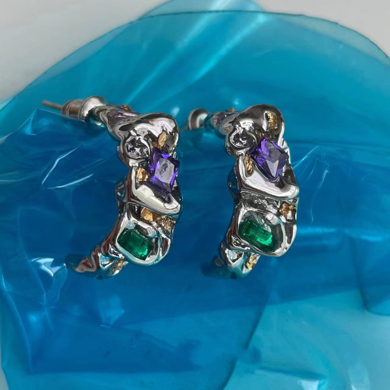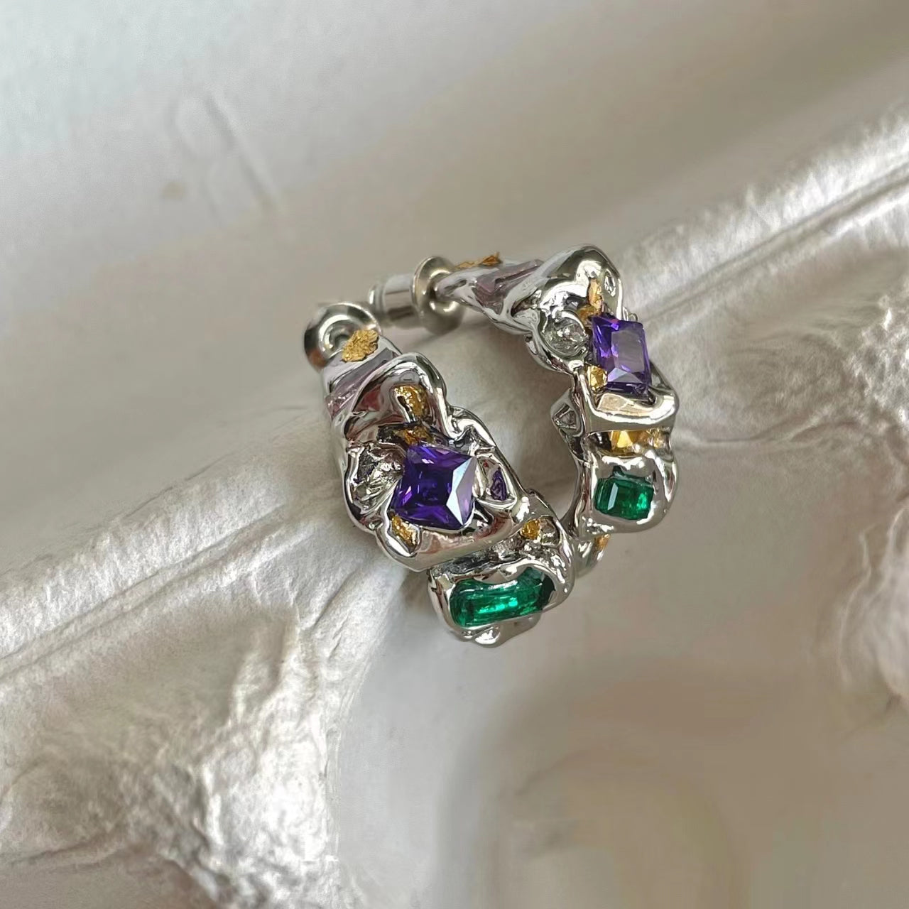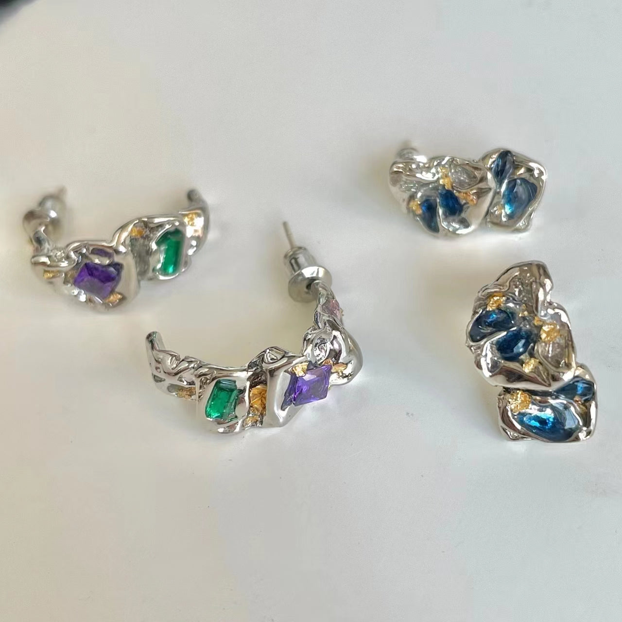 Wrinkled texture, gold foil with diamond, cool wind, versatile, hot Earrings