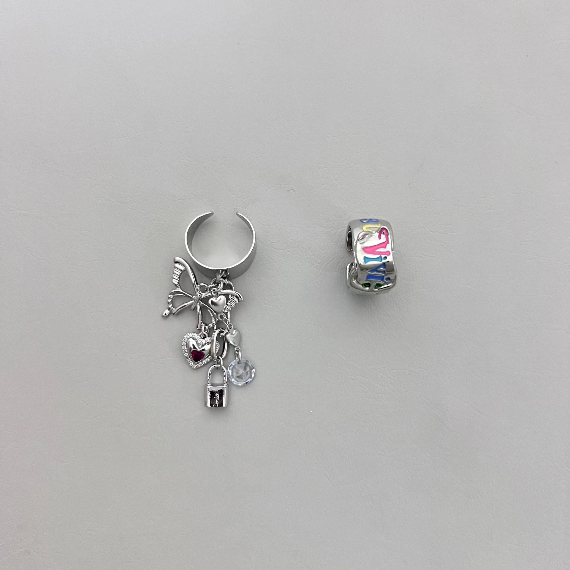 Xijia Rainbow Letter Belt Sweet Cool Cool Cool Style Personalized Hip Hop trendsetter Metal Butterfly Love Pendant Ring Finger