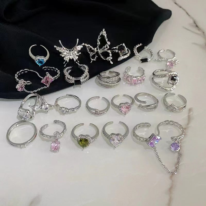 Zircon diamond ring heart opening ring temperament light luxury high sense ring